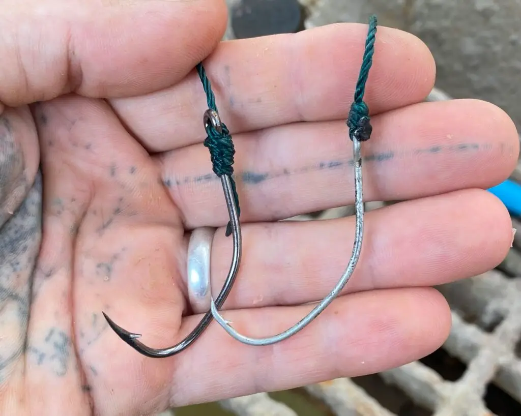 Along with substantial line and weight I have to use pretty substantial hooks. I learned real fast that trying to man handle these Mississippi River blue cats will bend a hook straight in a heartbeat. It’s definitely not the same as fighting one with a rod and reel.
